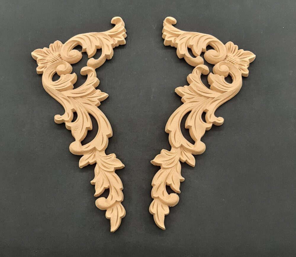 Διακοσμητικά από ξυλοπολτό για οποιαδήποτε χρήση στα έργα σας. Έυκαμπτα ,αφού τα ζεστάνετε με πιστολάκι (σεσουάρ), μπορείτε να τα εφαρμόσετε και σε στρογγυλές επιφάνειες όπως μπουκάλια , έπιπλα κ.τ.λ