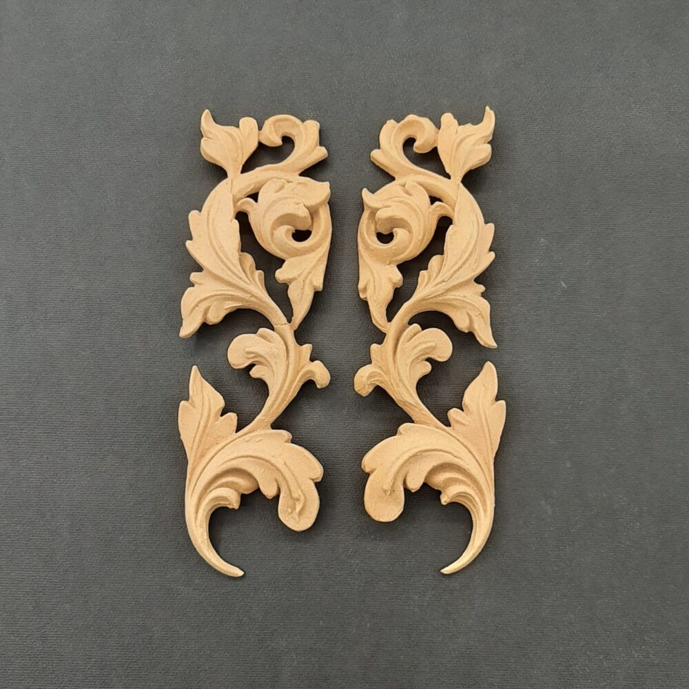 Διακοσμητικά από ξυλοπολτό για οποιαδήποτε χρήση στα έργα σας. Έυκαμπτα ,αφού τα ζεστάνετε με πιστολάκι (σεσουάρ), μπορείτε να τα εφαρμόσετε και σε στρογγυλές επιφάνειες όπως μπουκάλια , έπιπλα κ.τ.λ