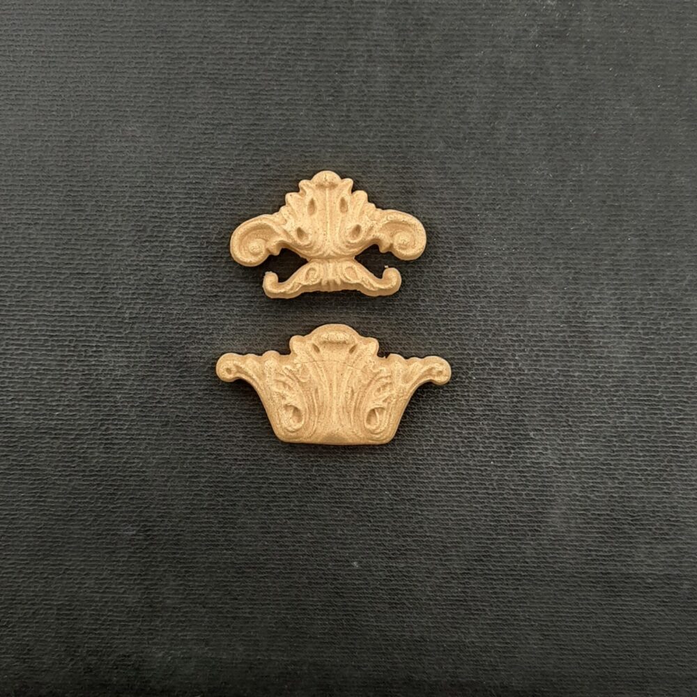 Διακοσμητικά από ξυλοπολτό για οποιαδήποτε χρήση στα έργα σας. Έυκαμπτα ,αφού τα ζεστάνετε με πιστολάκι (σεσουάρ), μπορείτε να τα εφαρμόσετε και σε στρογγυλές επιφάνειες όπως μπουκάλια , έπιπλα κ.τ.λ