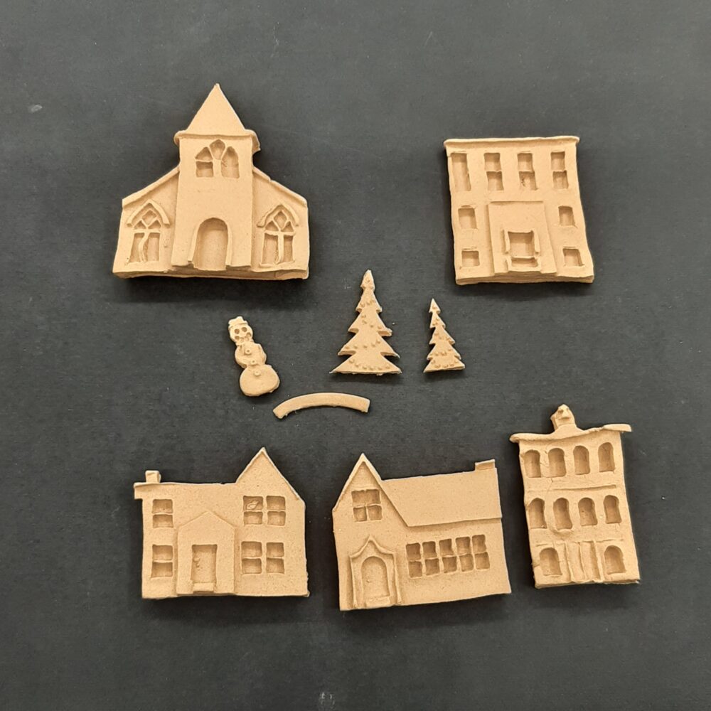 Ξυλόγλυπτο Διακοσμητικό χωριό Σετ 5 Τεμαχίων 6εκ.Χ8εκ
