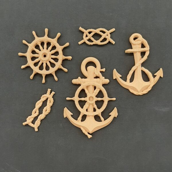 Ξυλόγλυπτο Διακοσμητικό Σετ 5 Τεμαχίων Άγκυρες-Ναυτικοί κόμποι