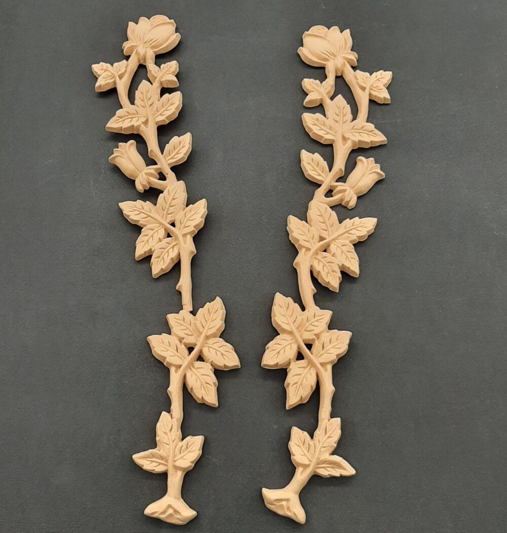 Διακοσμητικά από ξυλοπολτό για οποιαδήποτε χρήση στα έργα σας. Έυκαμπτα ,αφού τα ζεστάνετε με πιστολάκι (σεσουάρ), μπορείτε να τα εφαρμόσετε και σε στρογγυλές επιφάνειες όπως μπουκάλια , έπιπλα κ.τ.λ