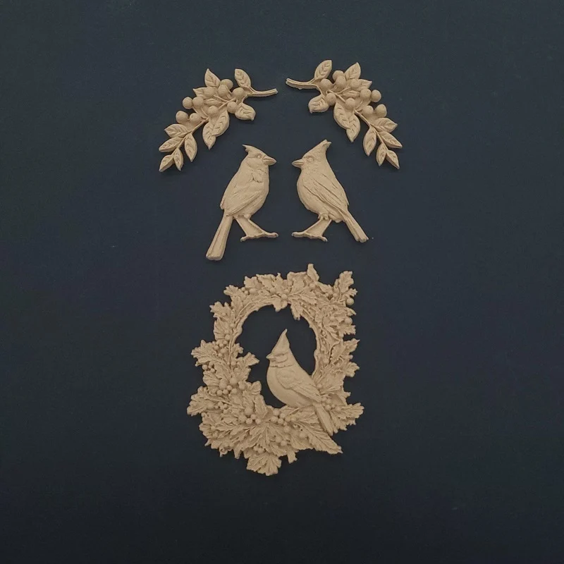 Ξυλόγλυπτος Χριστουγεννιάτικος Καρδινάλιος Σετ 5τεμ.