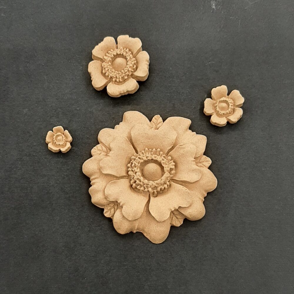Ξυλόγλυπτο Διακοσμητικό Σετ Λουλουδιών 6,5εκ.,3εκ.,2εκ.,1εκ.
