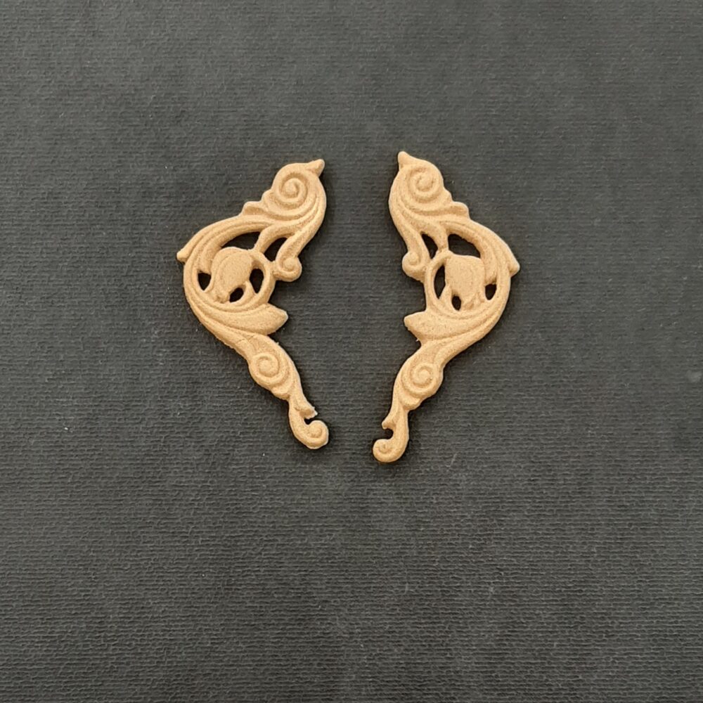 Διακοσμητικά από ξυλοπολτό για οποιαδήποτε χρήση στα έργα σας. Έυκαμπτα ,αφού τα ζεστάνετε με πιστολάκι (σεσουάρ), μπορείτε να τα εφαρμόσετε και σε στρογγυλές επιφάνειες όπως μπουκάλια , έπιπλα κ.τ.λ
