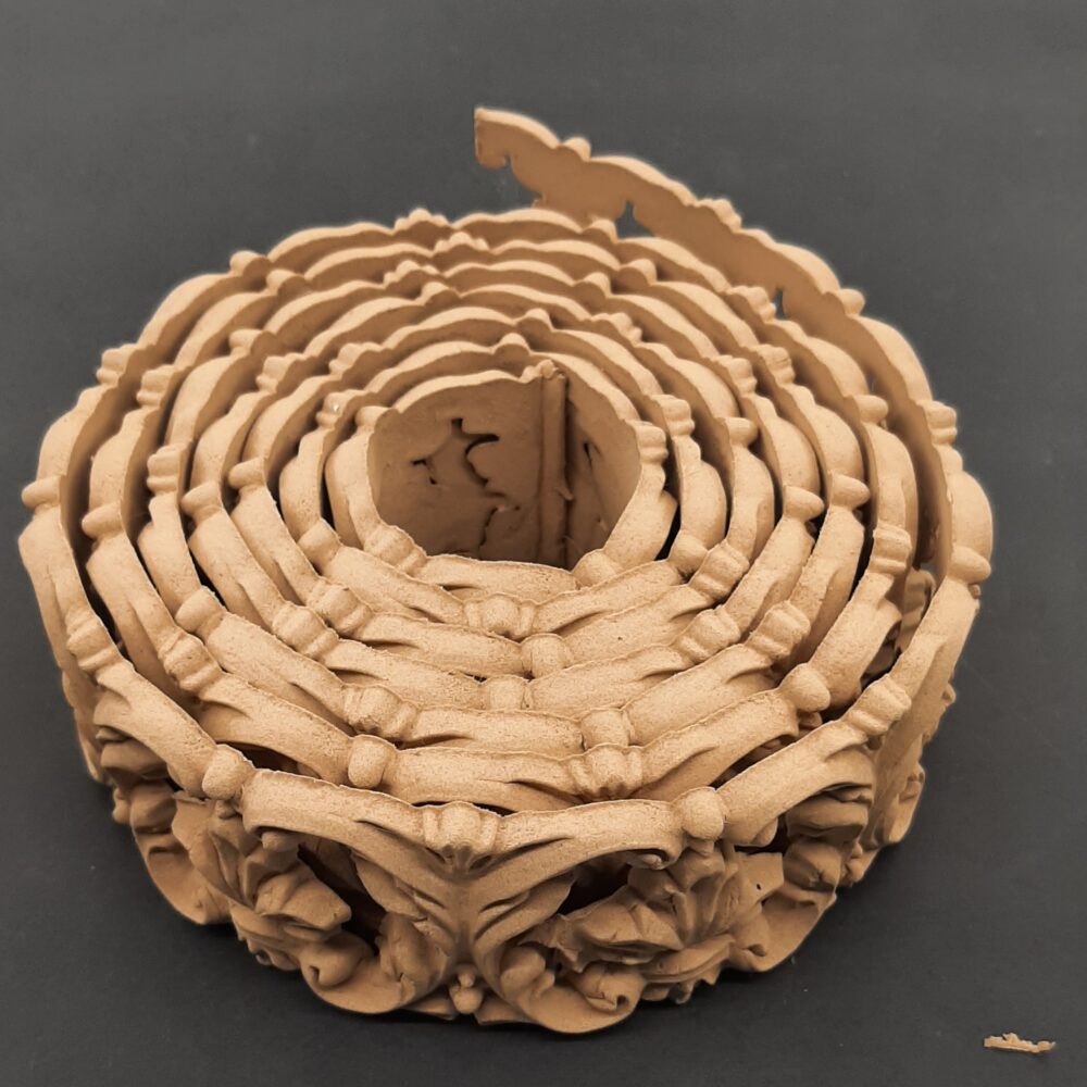 Διακοσμητικά από ξυλοπολτό για οποιαδήποτε χρήση στα έργα σας. Έυκαμπτα ,αφού τα ζεστάνετε με πιστολάκι (σεσουάρ), μπορείτε να τα εφαρμόσετε και σε στρογγυλές επιφάνειες όπως μπουκάλια , έπιπλα κ.τ.λ
